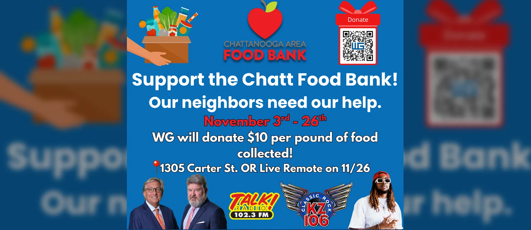 "We're giving thanks in a big way! Warren & Griffin are matching donations to the Chattanooga Food Bank with $10 per pound, up to $2,500! And Cumulus Media wants to keep the giving going-lo...